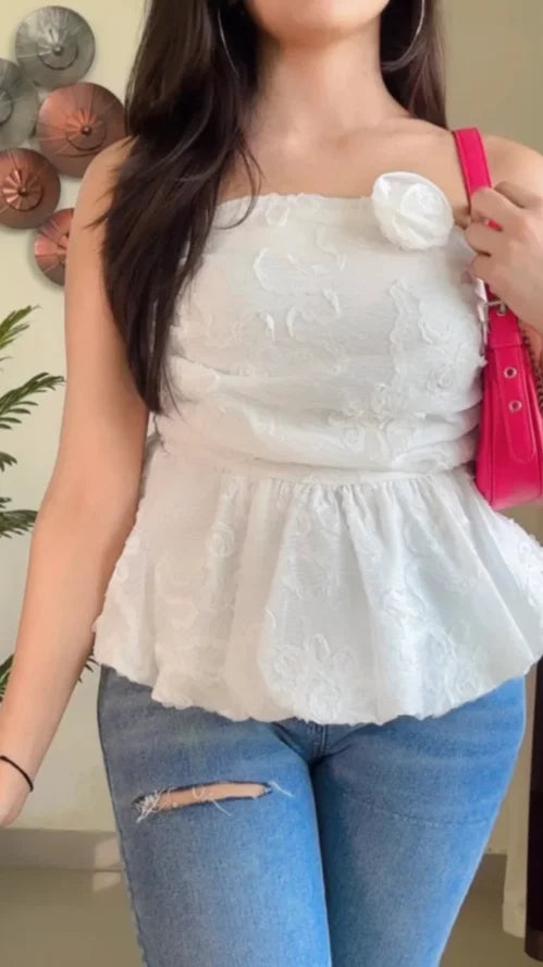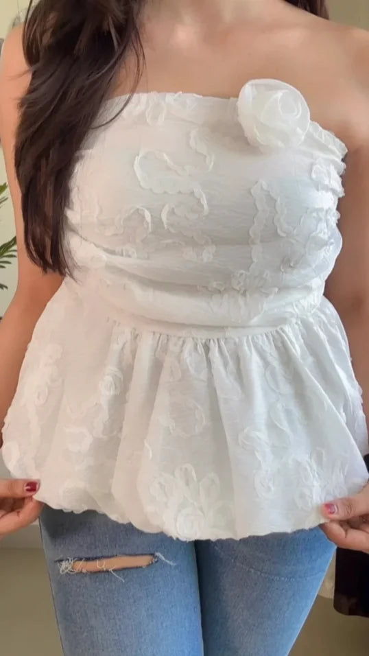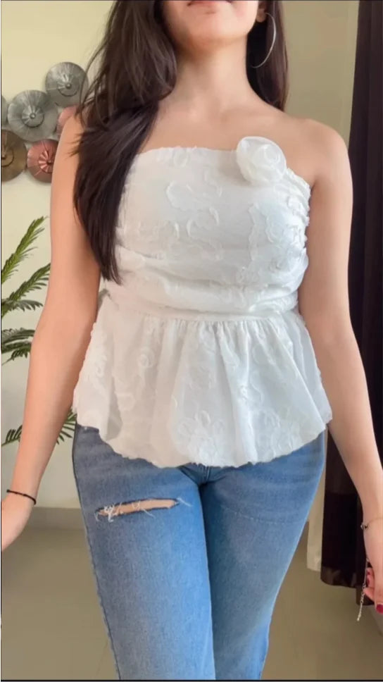 Embroidered Pretty Tube Top (Smoked Back) – T888